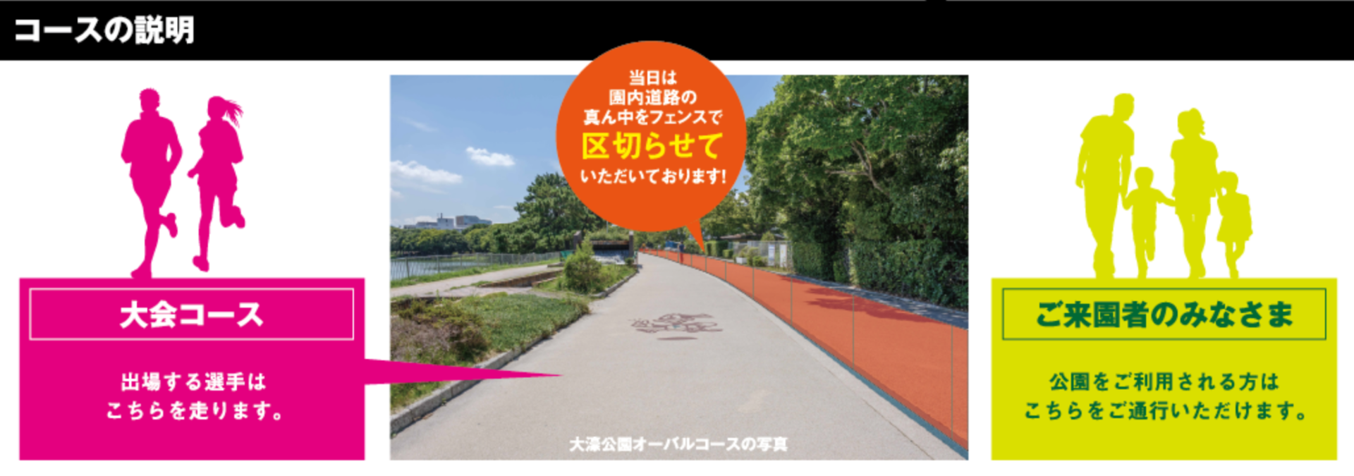 大会当日は、園内道路の真ん中をフェンスで区切らせていただきます。